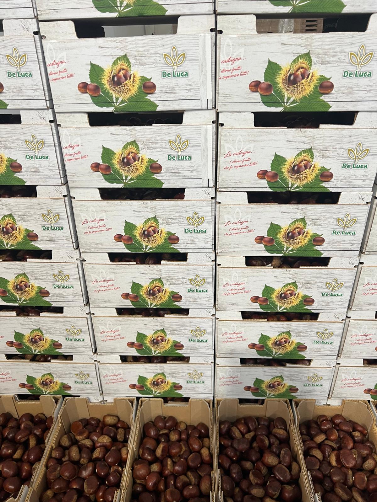 Siamo specializzati nella produzione e commercializzazione di castagne, avvalendoci di circa 1.000 fornitori locali e gestendo direttamente 120 ettari di produzione propria. Grazie alla filiera corta, possiamo garantire elevata competitività e qualità del prodotto. Recentemente, la castagna di Roccamonfina ha ottenuto il riconoscimento IGP (Indicazione Geografica Protetta), attestando l’eccellenza e la tipicità del nostro prodotto. Offriamo un’ampia selezione di castagne, tra cui Riccia di Roccamonfina, Primitiva di Conca della Campania, Bouche, Marroni, Mercogliana e altre varietà locali di alta qualità. I nostri prodotti sono confezionati in diversi formati per soddisfare ogni esigenza: sacchi in rete da 0,5 kg / 1 kg / 3 kg / 5 kg, sacchi di juta da 5 kg / 10 kg o vendita alla rinfusa. Garantiamo il massimo livello di sicurezza alimentare attraverso il sistema HACCP, che prevede controlli microbiologici regolari su prodotti, ambienti di lavoro, attrezzature e personale addetto alla lavorazione. Inoltre, i nostri prodotti possiedono le seguenti certificazioni: ICEA, GLOBAL GAP, GRASP, IFS, BIO SUISS, assicurando elevati standard di qualità e sicurezza alimentare.
